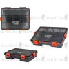 Négy ponton záródó, biztonságos műcsalis doboz. A jól bevált hagyományoknak megfelelően a belső beosztás szabadon alakítható. Az átlátszó fedőnek köszönhetően a tartalom egy pillanat alatt áttekinthető.
