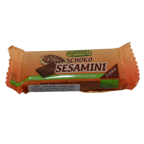 Rapunzel bio szezámszelet csokoládés 27 g RAPUNZEL BIO CSOKOLÁDÉS SZEZÁMSZELET Finom ropogtatnivaló és egészséges csemege.