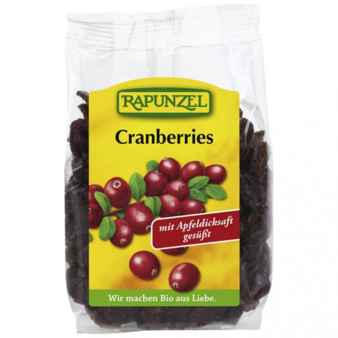Összetétel: vörösáfonya*(60%), almalé*(39%), napraforgóolaj* *= ellenőrzött ökológiai gazdálkodásból. A vörösáfonyát szárítás után almalével felfőzik, amely enyhíti savanyú ízét, és erősíti a gyümölcs aromáját. Ajánljuk süteményekbe, szószok készítésére,