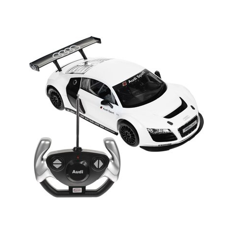 Távirányítású Audi R8 a sportautók szerelmeseinek! Az autómárka egyik legkedveltebb modelljének valósághű, részletgazdag másolata fehér színben. A távirányítóval jobbra, balra, előre és hátra kormányozható az autó, a kontroller működési frekvenciája 27 MHz. Az akkumulátor üzemideje hosszú, a távirányító hatótávja 30 méter. Az autó méretaránya 1:24, motorja elektromos. Egyaránt jó választás játékhoz és a gyűjteménybe. A termék üzemkész állap