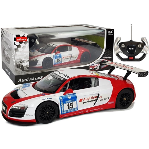 R/C Audi R8 LMS Rastar autó 1:14 fehér-piros Audi R8 LMS Rastar távirányítós autó 1:14 fehér-piros Ha sportautó-kormánymesterré szeretnél válni, ez a tökéletes készlet lesz számodra. Egy kiváló, engedéllyel rendelkező, távirányítós Audi R8 LMS autó 1:1