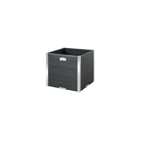 1 kép Rattan Polirattan virágtartó láda 46x46x46 cm antracit növénytartó kaspó rozsdamentes éllel