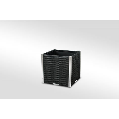 1 kép Rattan Polirattan virágtartó láda 46x46x46 cm fekete növénytartó kaspó rozsdamentes éllel