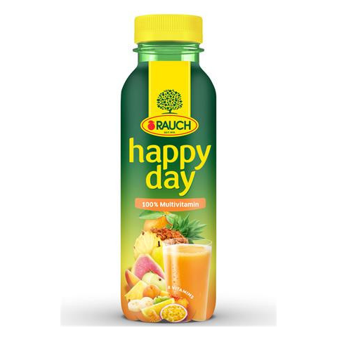 Happy Day 100%-os multivitamin. A Happy Day a gyümölcsök teljes skáláját kínálja, kezdve a klasszikusoktól, - mint a narancs és az alma -, egészen a különleges és egzotikus gyümölcsökig, mint az eper, a rebarbara, a mangó, a gránátalma és a pink guava. Ajánljuk finom reggeli mellé vagy koktélba. -fogyasztás előtt felrázandó -űrtartalom: 0,33 l Gyártó/első EU forgalmazó elérhetősége: RAUCH Hungária Kft 1172 Budapest, Kis Károshíd utca 1. office.hu@rauc