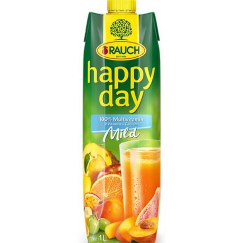 Gyümölcslé, 100 százalék , 1l, RAUCH Happy day, multivitamin mild (KHI336) 100%-os gyümölcslé alacsony savtartalommal Gyártó/első EU forgalmazó elérhetősége: RAUCH Hungária Kft 1172 Budapest, Kis Károshíd utca 1. office.hu@rauch.cc https://www.rauch