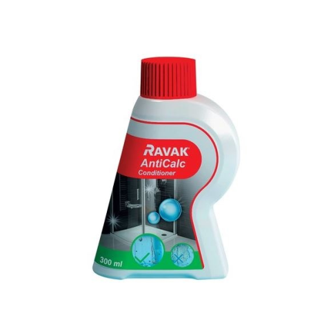 Ravak AntiCalc Conditioner (300 ml) Speciális védőanyag a Ravak zuhanykabinok üvegbetéteihez és üvegajtóihoz. Az AntiCalc® képlet hatékonyan védi az üveget a mészkő- és vízkövesedéstől, hosszú élettartamot biztosítva. A Ravak AntiCalc Conditioner bem