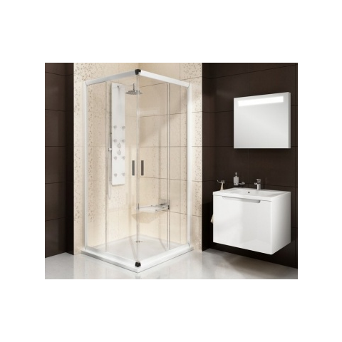 Blix BLRV2 90x90 zuhanykabin krómhatású+transparent Négyrészes sarok zuhanykabin 90x90 cm méretben, elegáns krómhatású kerettel és tiszta átlátszó edzett biztonsági üveggel. Tolóajtós rendszer és AntiCalc® vízlepergető réteggel a könnyebb karbantartásért
