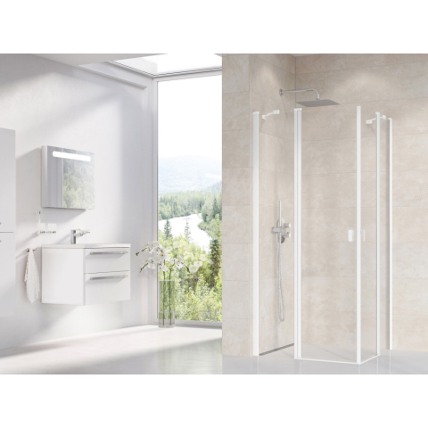 Chrome CRV2-100 zuhanyajtó matt fehér+transparent Elegáns RAVAK zuhanyajtó matt fehér kerettel és átlátszó edzett biztonsági üveggel. 98-100 cm széles, 195 cm magas nyílóajtós rendszer, amely tökéletes kiegészítése a modern fürdőszobáknak. A Chrome C