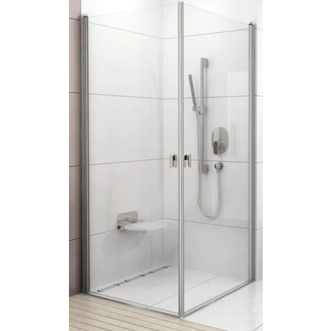 Chrome sarokzuhanykabin egy oldala, krómhatású kerettel, átlátszó, edzett biztonsági üveggel, Ravak Anticalc® vízlepergető réteggel. A zuhanykabin kialakításához a terméket CRV1, CRV2 zuhanyajtóval vagy CPS fix fallal kombinálják. Nyílóajtós rendszer.