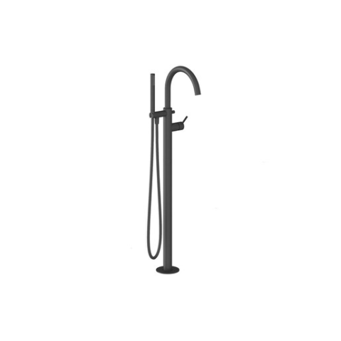 Karos padlófürdő csaptelep, rejtett egység nélkül, matt fekete színben. Az akkumulátor magassága 127 cm. Az akasztó 95,4 cm magas. Matt felülettel
