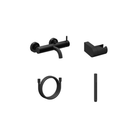Espirit fali kádcsaptelep szettel, matt fekete ES 022.20BLM+S Elegáns falra szerelhető kádcsaptelep matt fekete kivitelben, integrált zuhanyszettel. A rejtett perlátor biztosítja a hatékony vízfelhasználást és a csökkentett szóródást fürdéskor. Az Es