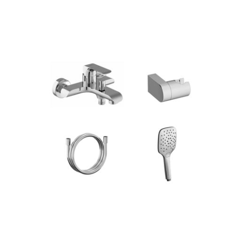Flat fali kádcsaptelep szettel, króm FL 022.00CR+S Modern falra szerelhető kádcsaptelep integrált zuhanyszettel. RAVAK Flat széria terméke elegáns króm kivitelben, amely tökéletes választás bármely fürdőszobához. A Flat fali kádcsaptelep bemutatása A