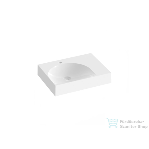 Lite 60/45 mosdó jobb oldalon tárolórésszel. A mosdó nincs túlfolyóval ellátva, ezért fix mosdólefolyó alkalmazása szükséges, amely megakadályozza a víz túlfolyását. A mosdón előre fúrt lyuk van a talapzaton lévő mosdócsaptelep számára. A szerelőkészlet