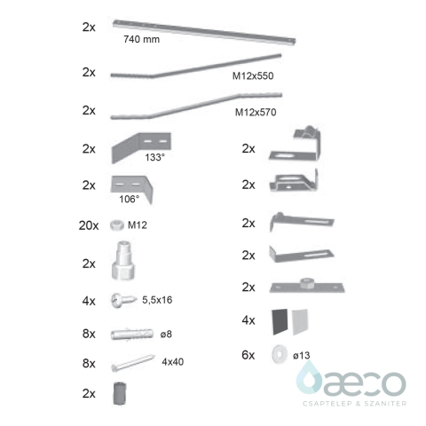 Készlet a LoveStory II fürdőkád burkolólapjának rögzítéséhez.