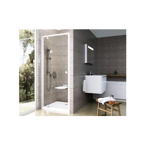 Pivot PDOP1-80 zuhanyajtó krómhatású+transparent Elegáns Pivot forgózsanéros zuhanyajtó krómhatású kerettel és fényes fogantyúkkal. Ravak AntiCalc® vízlepergető réteggel ellátott átlátszó biztonsági üvegből készült. 76-81 cm széles nyílásra ideális.