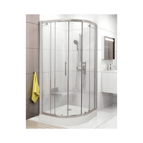A Ravak kompakt, 90 cm x 90 cm-es negyedköríves, krómhatású, átlátszó, edzett biztonsági üveggel ellátott zuhanykabin. A kabin 2 db egyenes, fix részből és 1 db íves, nyíló elemből áll, mely a termék ajtaját képezi. Kizárólag a Ravak Ronda Basic 90 KOMPAKT és Ravak ELIPSO PRO-90 FLAT zuhanytálcákkal kompatibilis. Az ajtók belépőnyílásának szélessége 565 mm, beépítési méretei: 875 - 895 mm x 875 - 895 mm. Gyors összeszerelés.