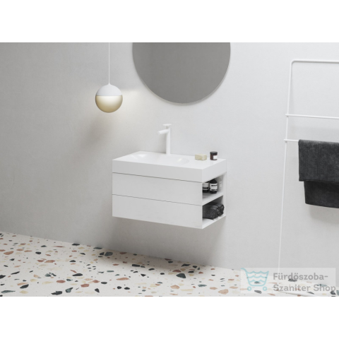 Csak bútor, mosdó külön rendelhető! Az SD Lite 80 J-es mosdószekrény Lite 80/45 J-es és Lite 80/60 J-es mosdóhoz készült. Két első fiókkal és két oldalsó polccal van felszerelve. A szekrényfiók az elülső oldal szélének meghúzásával nyílik. Összeszerelve