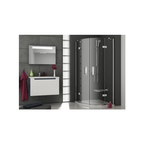 SmartLine SMSKK4 80x80 zuhanykabin króm+transparent Elegáns negyedköríves zuhanykabin fényes króm kerettel és tiszta üveggel. Az AntiCalc® bevonata tartósan védi az üveget, míg a zsanéros rendszer kényelmes nyitást biztosít. A SmartLine zuhanykabin b