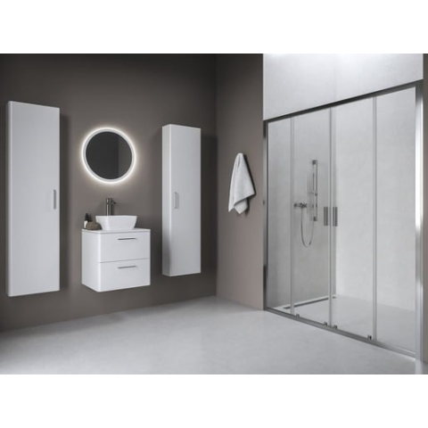 Blix II NBLDP4 120 zuhanyajtó krómhatású+transparent Elegáns négyrészes tolóajtós zuhanykabin krómhatású profilokkal és átlátszó biztonsági üveggel. AntiCalc® vízlepergető réteggel ellátva a hosszantartó fényes felületért. A termékről A Blix II NBLDP