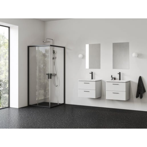 Zuhanysarok tálca nélkül fekete színben, a felület átlátszó üvegből készült dekor nélküli. A RAVAK AntiCalc® technológiának köszönhetően az üveg víztaszító tulajdonságokkal rendelkezik, ami azt jelenti, hogy az üveg felülete víztaszítóvá válik. Tolóajtó rendszer. bal és jobb oldali tájolás is.