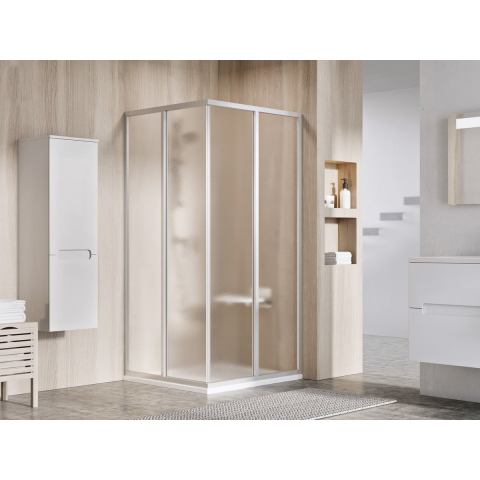 Zuhanysarok tálca nélkül matt króm színben, a felület átlátszatlan üvegből készült Grape dekorral. A RAVAK AntiCalc® technológiának köszönhetően az üveg víztaszító tulajdonságokkal rendelkezik, ami azt jelenti, hogy az üveg felülete víztaszítóvá válik. Tolóajtó rendszer. bal és jobb oldali tájolás is.