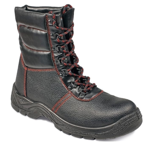 S3 védelmi képességű, acél lábujjvédővel és acél átszúrás elleni köztalppal készült magasszárú munkavédelmi bakancs, bivalybőr felsőrésszel. Magasszárú, S3-as védelmi képességű munkavédelmi bakancs S3 védelem, amely tartalmazza az acél lábujjvédőt és