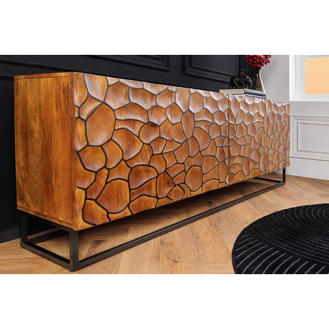 Stílusos komód Raven 180 cm 3D mozaik natúr barna mangó A natúr barna Raven komód aprólékos részletgazdagsággal megalkotva, prémium minőségű tömörfából készült és bőséges tá