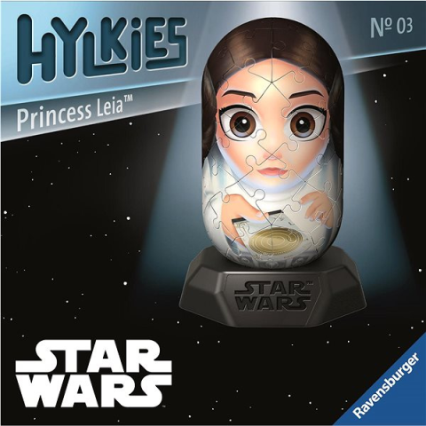 3D puzzle - 54 darabos, téma filmek és sorozatok, innen ismert Star Wars, számozott hátsó oldal, anyaga műanyag, összeállított puzzle méretei 12,1 × 8 cm, ajánlott 6 éves kortól A Ravensburger 1120010142 Hylkies Star Wars: Leia hercegnő 54 darabos puzzle a Star Wars világából Leia hercegnő karakterét hozza el egyedi kapszula dizájnban. Az 54 minőségi műanyag darabból egy egye