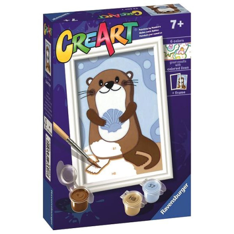 Festés számok szerint - téma állatok, ecsetkészlet, festékek, kifestett minta és színpaletta a csomag része, keretes, méretek 12 × 8,5 cm (Ma×Sz) A fantáziadús Ravensburger 236077 CreArt Aranyos vidra számfestő leglényegesebb tulajdonságai Az élvezetes festés számok szerint gondoskodik arról, hogy alkoss és kikapcsolódj Karton anyagból készült