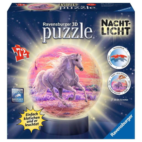 Ravensburger 3D Puzzle Éjszakai fény - lovak a tengerparton - 72 darabos (118434) puzzle, kirakós 1 kép