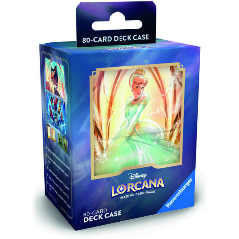 Gyűjthető kártya - méretek 8 × 10 × 6 cm, 80 kártya számára A Disney Lorcan : Archazias Island - Cinderella pakli doboza akár 80 gyűjtőkártyát is tartalmazhat. A 8 × 10 × 6 cm méretű doboz a báli Hamupipőke motívumával örvendezteti meg a játékosokat és gyűjtők