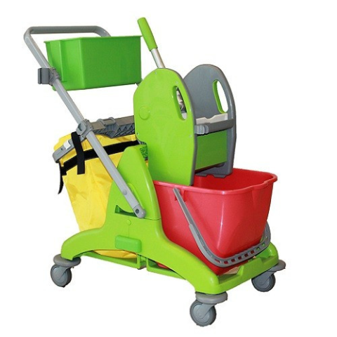 1x15 l műanyag felmosókocsi U tolóval, STRONG préssel. Műanyag váz 4×80mm kerékkel és 4 ütközővel. 50 literes zsáktartó. Eszköztartó. Méret: 770×440×845 mm