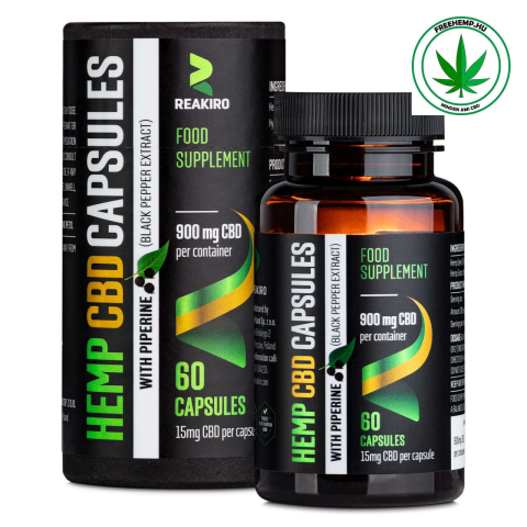 1 kép REAKIRO Hemp 900mg CBD kapszula+fekete bors kivonat