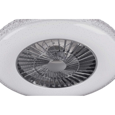 2 az 1-ben - Harstad mennyezeti lámpa beépített ventilátorral! A divatos csillagos égbolt hatással és kristály peremmel ellátott kerek lámpatest , a beépített ventilátorral. A mellékelt távirányítóval a fényerősség , és a színhőmérséklet fokozatmentesen állítható 3000 K - 6500 K között. A lámpa éjszakai fény funkcióval is rendelkezik, amely ugyancsak a távírányítón keresztül elérhető. Az integrált ventilátor három fokozatú, ezért ideális az irodá