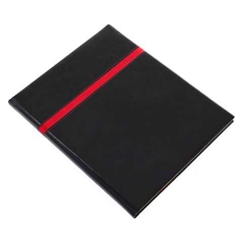 Határidőnapló REALSYSTEM Business A/4S heti sárga lapos élei egyedi grafikával nyomott fekete 2026. Exkluzív varrott műbőr borító. Présfólia és vaknyomással emblémázható. Sárga papíros, cérnafűzött, A/4 heti beosztású, 144 oldalas, sarokperforált, je