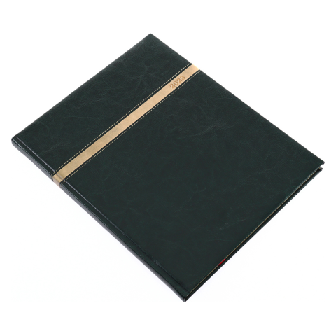Határidőnapló REALSYSTEM Business A/4S heti sárga lapos élei egyedi grafikával nyomott zöld 2026. Exkluzív varrott műbőr borító. Présfólia és vaknyomással emblémázható. Sárga papíros, cérnafűzött, A/4 heti beosztású, 144 oldalas, sarokperforált, jelz