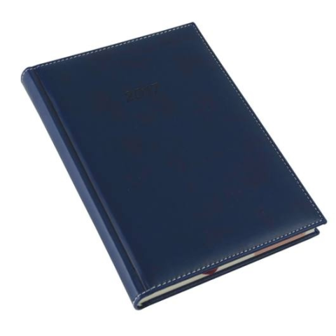 Hőre színeződő matt, varrott műbőr, borítással, présfólia és vaknyomással emblémázható. Sárga papíros, cérnafűzött, A/5 napi beosztású, 352 oldalas, sarokperforált, jelzőszalagot és térképet tartalmaz.