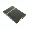 Exkluzív varrott műbőr borító, arany élmetszett könyvtest. Présfólia és vaknyomással emblémázható. Sárga papíros, cérnafűzött, B/5 napi beosztású, 400 oldalas, sarokperforált, jelzőszalagot és térképet tartalmaz.