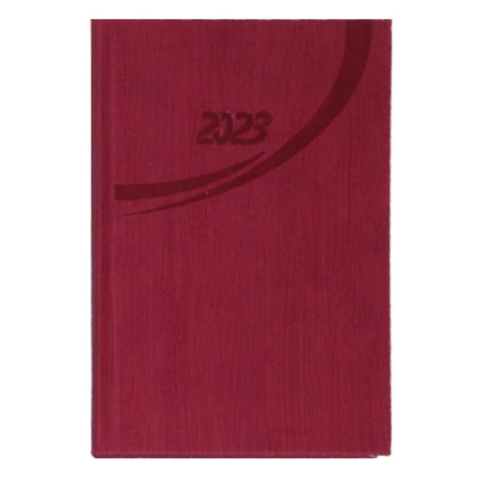 Fashion típusú, merészen struktúrált felületű, magas minőségű műbőr borítás, vaknyomással emblémázható. Fehér papíros, cérnafűzött, A/5 heti beosztású, 144 oldalas, sarokperforált, jelzőszalagot tartalmaz.