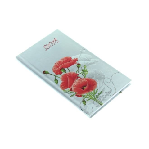 Különböző felületnemesítéssel, illetve fóliával bevont papírborító. Fehér papíros, cérnafűzött, heti beosztású zsebnaptár, 144 oldalas, sarokperforált.