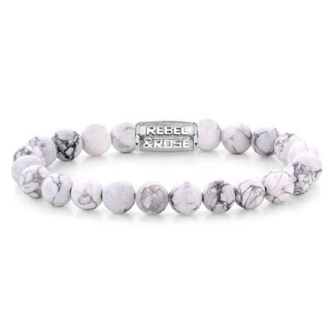 1 kép Rebel and Rose - Szűz fehér féldrágaköves karkötő, férfi divatékszer - (RR-80066-S-M)
