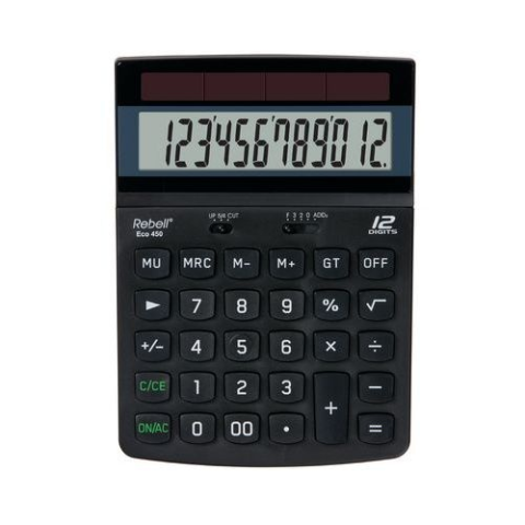 Környezetbarát számológép 100%-ban napenergiával működik, nincs szükség elemre a működéséhez Nagy napelem panel A számológép 70%-a újrahasznosított műanyagból készült 12 számjegyű, állítható LCD kijelző GT-funkcióvégösszeg számítás MU funkció Kerekítés f