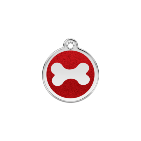 1 kép Red Dingo Csillámos Rozsdamentes csont mintás acél biléta piros