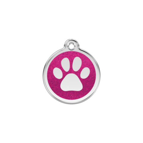 1 kép Red Dingo Csillámos Rozsdamentes mancs mintás acél biléta hot pink