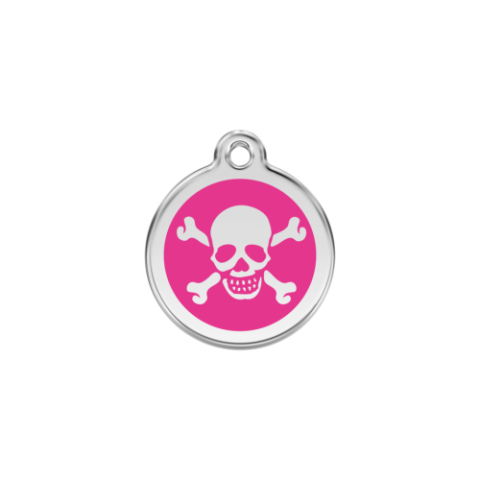 1 kép Red Dingo Rozsdamentes koponya-keresztcsont mintás acél biléta hot pink