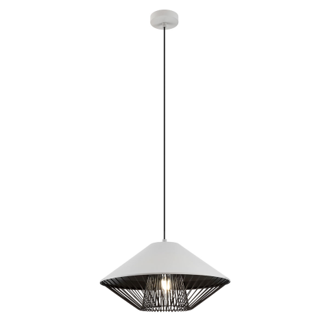 Különleges kialakítású függesztett lámpa, kúp alakú lámpaernyővel és fekete dekorráccsal. A lámpa E27 foglalattal, cserélhető fényforrással került kialakításra. A lámpa fényforrást nem tartalmaz. Négyféle színben kapható...