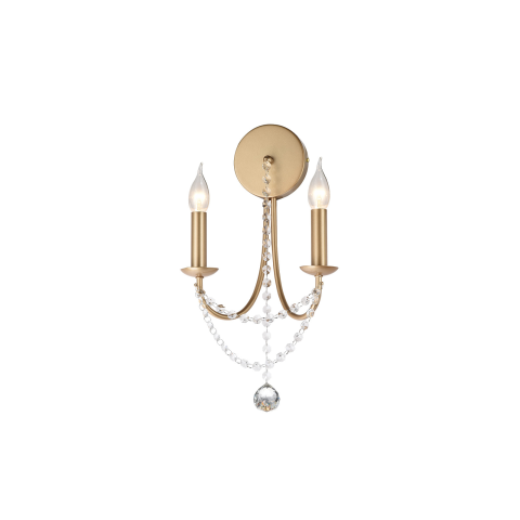 Elegáns fali lámpa, fém szerkezettel, matt arany vagy matt fekete, áttetsző kristály díszítéssel. A lámpa E14 foglalattal, cserélhető fényforrással került kialakításra...