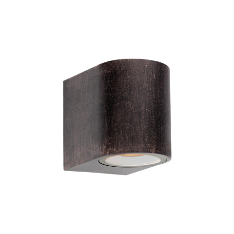 IP44-es védelemmel ellátott modern stílusú kültéri fali lámpa, öntött alumíniumból, sötétszürke és rozsdabarna színben. Stílusos megoldás minden homlokzat, terasz, bejárati ajtó és veranda minőségi megvilágítására. A lámpa GU10 foglalattal, cserélhető fén..