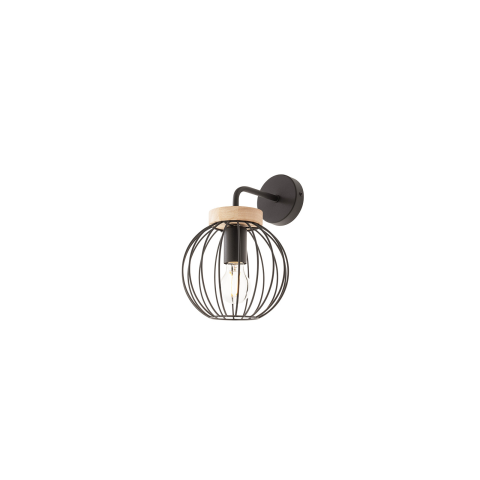 Vintage stílusú fali kar fekete fém talpból és gömb alakú matt fekete fémrácsokkal, felül natúr fa díszítő részlettel, amely modern hangulatot kölcsönöz nappalijának, étkezőjének, hálószobájának. A lámpa E27 foglalattal, cserélhető fényforrással került ki..