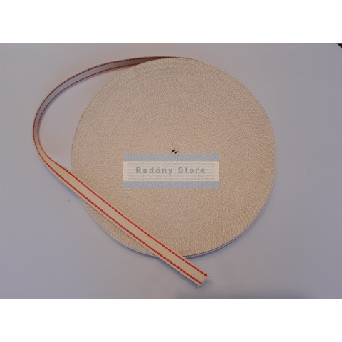 Maxi gurtni pamut anyagból törtfehér színű, piros csíkkal, 22 mm széles. Régi típusú belső tokos redőnyök felújítására, gurtnicseréjére szolgál. Ablakok esetében kb. 4-5 méter szükséges, míg ajtókon lévő redőnyökhöz 5-6 méter az ajánlott mennyiség. A term